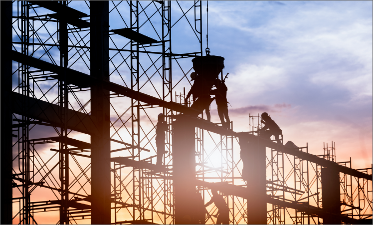 - 建設現場の仮設足場設置